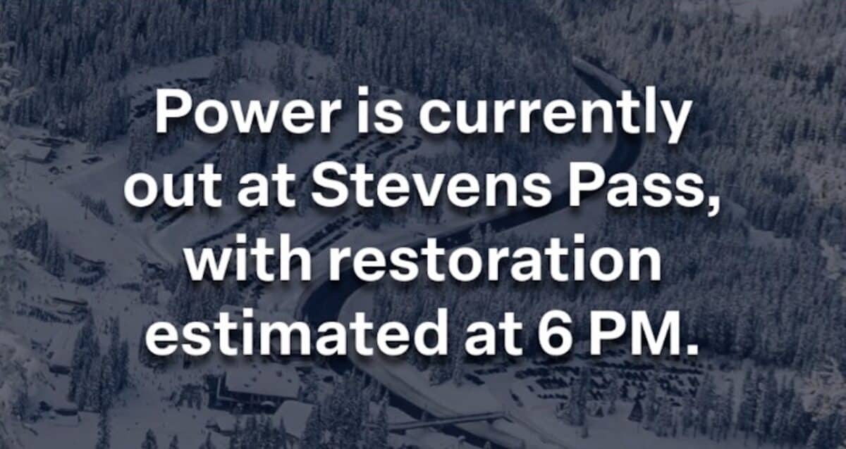 “Power is currently out at Stevens Pass, with restoration estimated at 6pm. We do not expect to open today and will share an update this afternoon.” -Stevens Pass Ski Resort