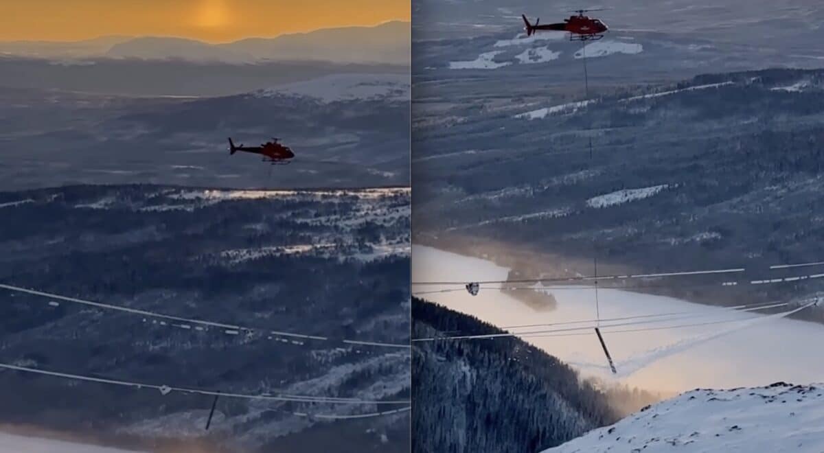 Iced-over cables can be a serious issue for chairlifts, gondolas, and tramways. When the cables become weighed down and frozen they’re usually unsafe for riders, so ski resorts tend to take steps to deice the system. This could include slowly driving the cable at night to prevent the icing in the first place, special ice scrapers, or careful work done by hand. The folks at ร re, Sweden, take a rather unique, helicopter-based approach to remove the ice.
