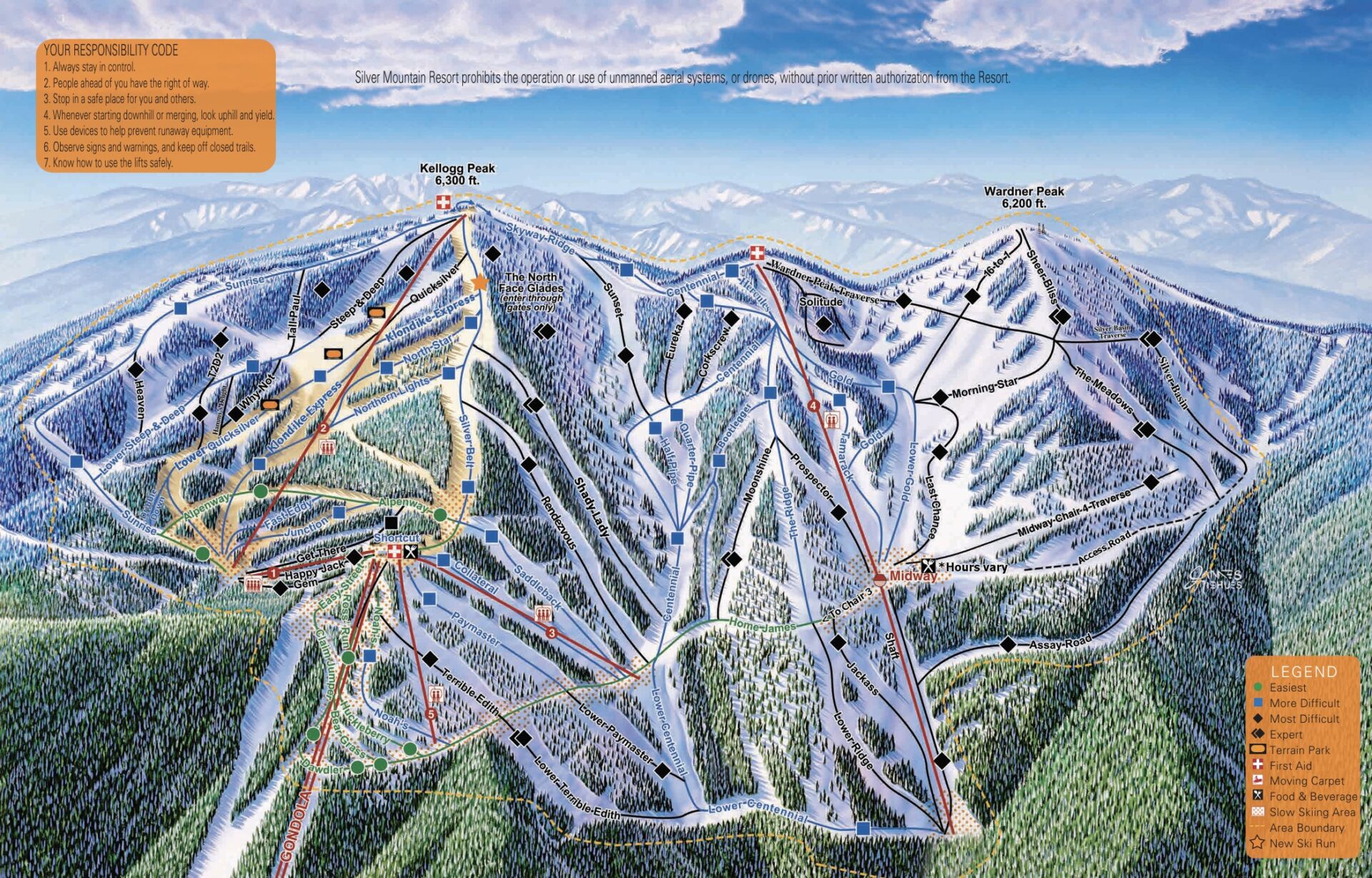 Installed in 1990, the Silver Mountain Gondola is the longest in America. The lift eliminates the need to use the road, creating a safe, less stressful trip up the mountain. Silver Mountain Resort has gradually expanded its infrastructure in Kellogg, including a golf course, hotel, indoor water park, condos, shops, and restaurants.