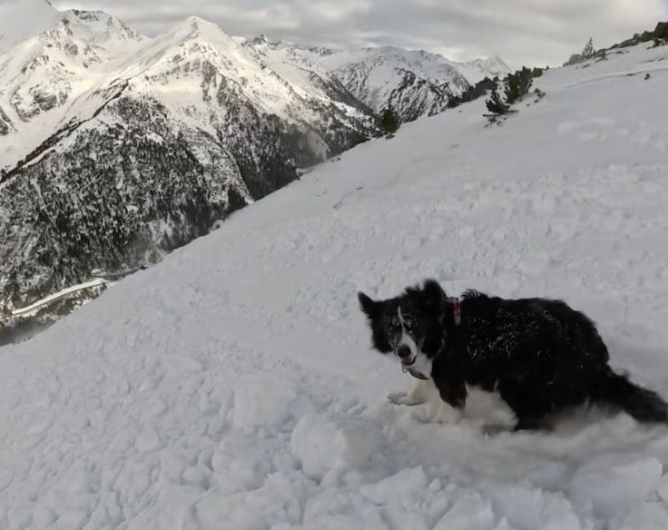Cim the dog was not initially caught in the slide and she desperately attempted to shoo it away out of danger but the loyal dog followed her into the debris as it careened down the mountain and was taken by the slide. Thankfully when they came to a stop neither ended up buried: