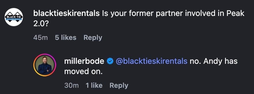 In the comment section of the post Miller responded to a question if he was still involved with his previous partner, Andy Wirth, for the relaunch. This was his response: