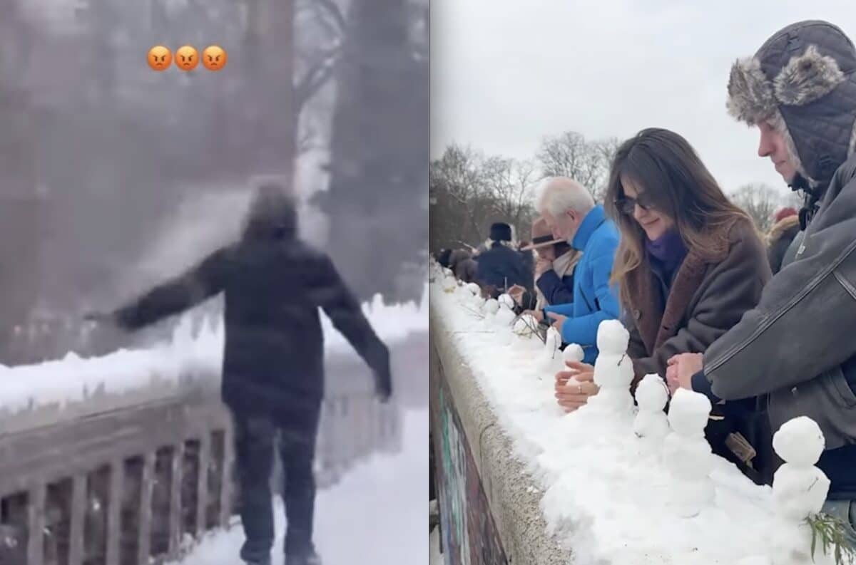 Some grumpy guy in Hamburg, Germany was caught on camera destroying hundreds of tiny snowmen lovingly built on the railing of bridge. The footage was shared on social media and sparked online outrage. The video of the needless vandalism went viral garnering over 12,000 comments.