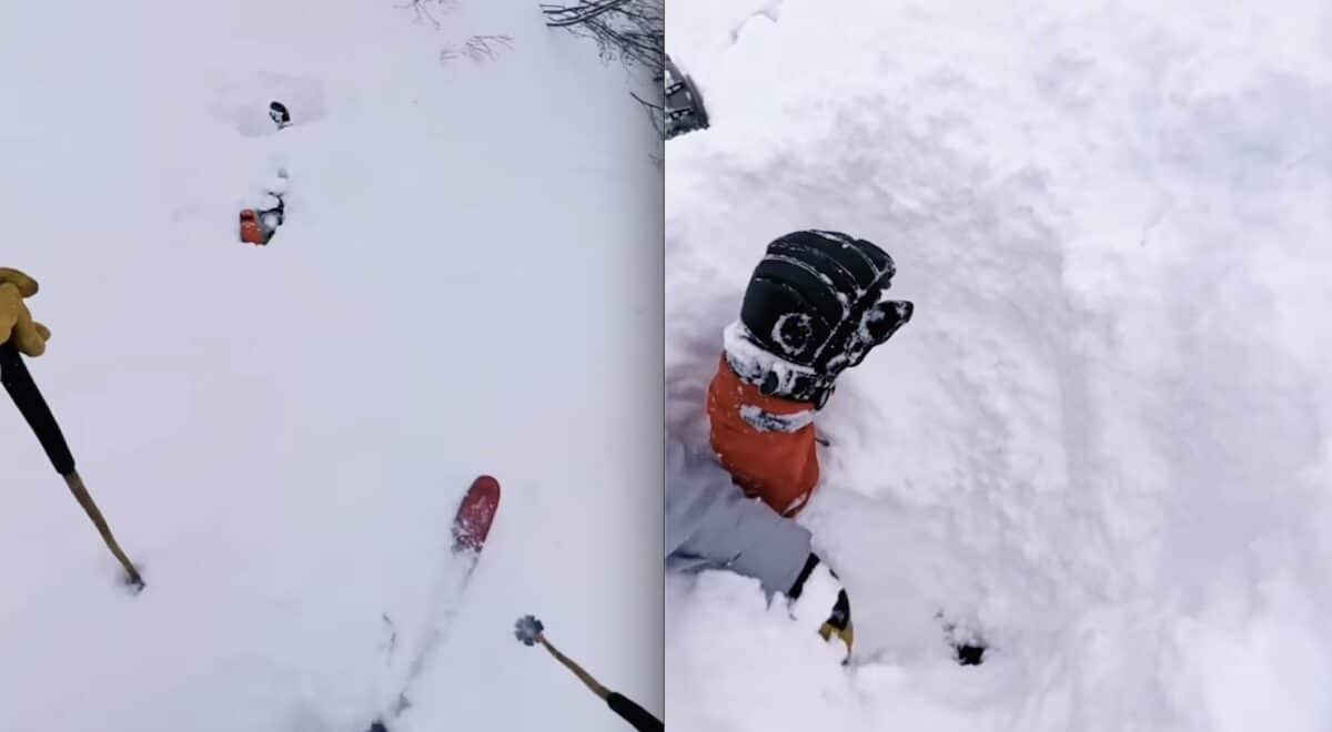 These skiers just happened to pass by a snow-sunked individual while riding at Engelberg in Switzerland, immediately rushing to help dig him out. They first ensured the skier could breath before working to dig out the rest of his body.