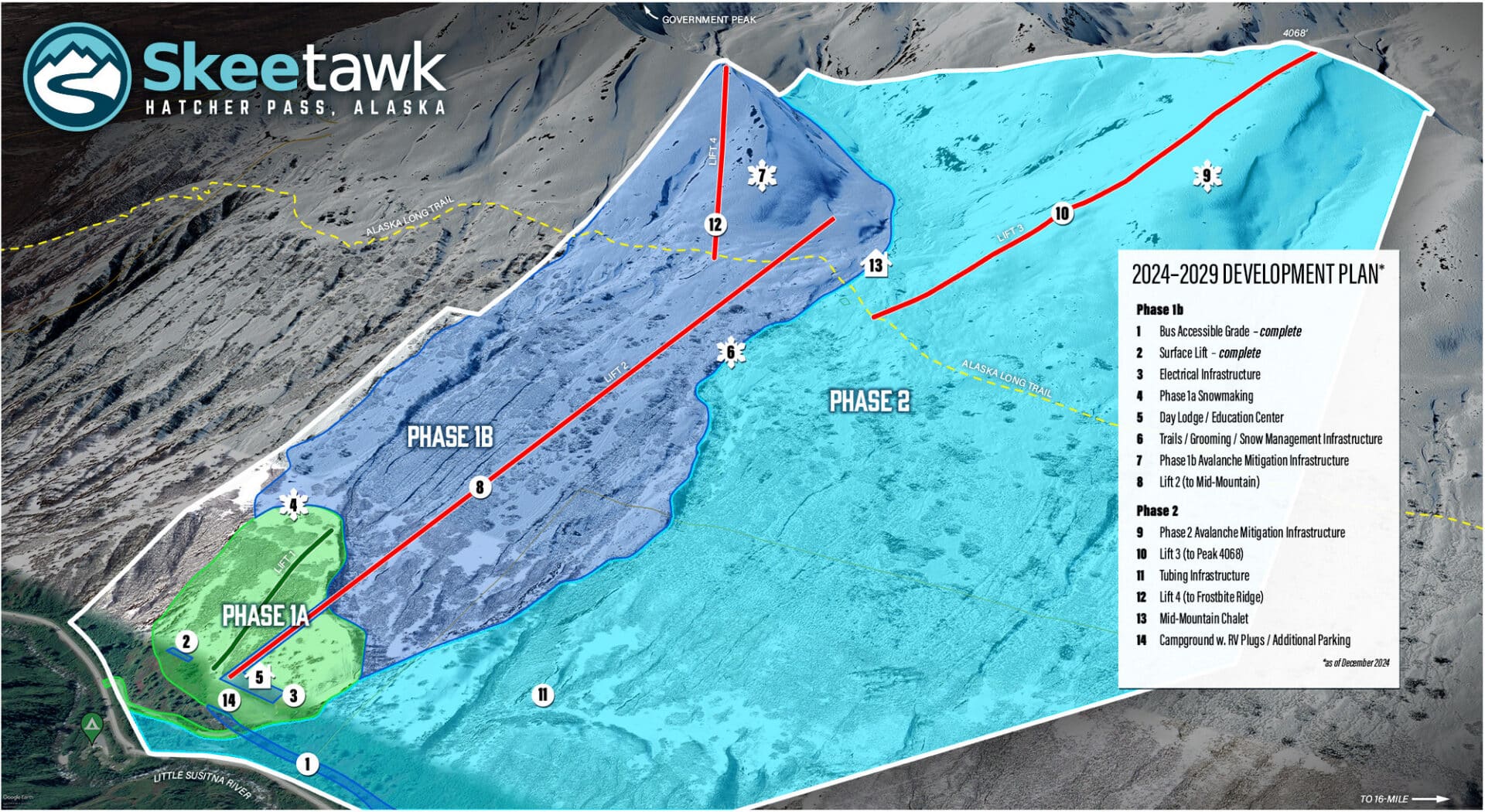 Next up is securing funding for a new mid-mountain lift (potentially a gondola), followed by additional lifts to access more technical terrain on the upper mountain. If their master plan is completed, Skeetawk would be the largest ski area in Alaska.