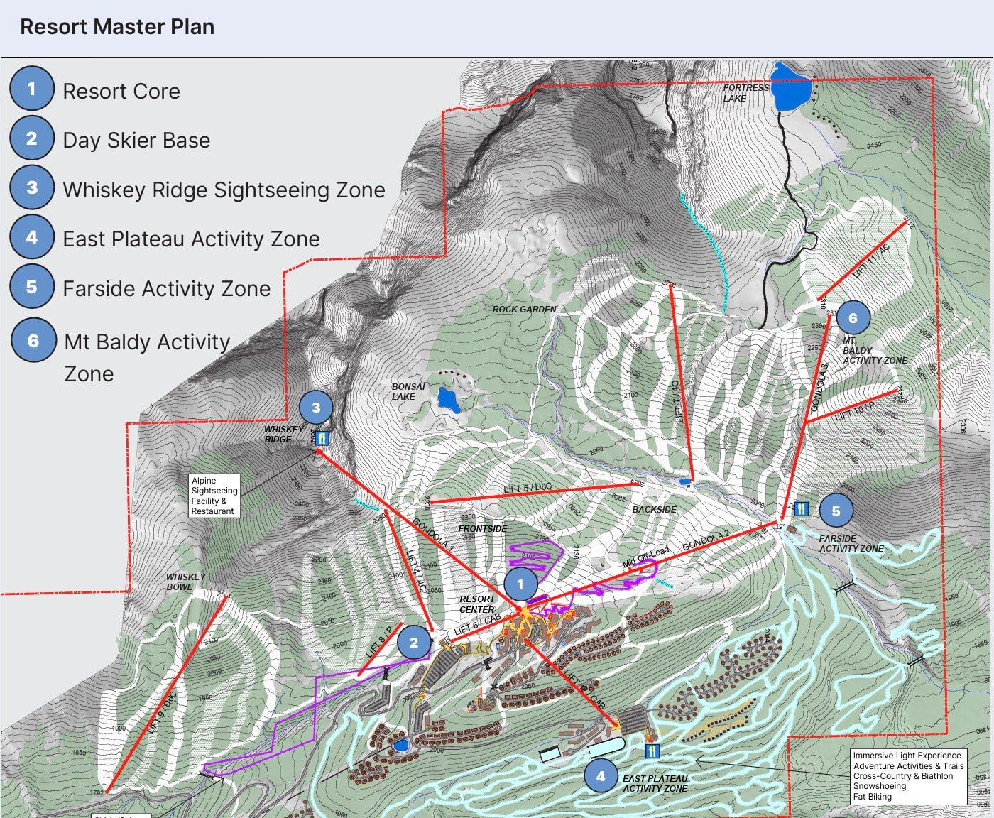 Perhaps one of the most interesting aspects is a gondola to Whiskey Ridge. However, it’s not for skiing; it’s for sightseeing. Some potential activities in phase one include mountain biking, ziplining, a mountain coaster, a canyon swing, and hiking and biking trails.