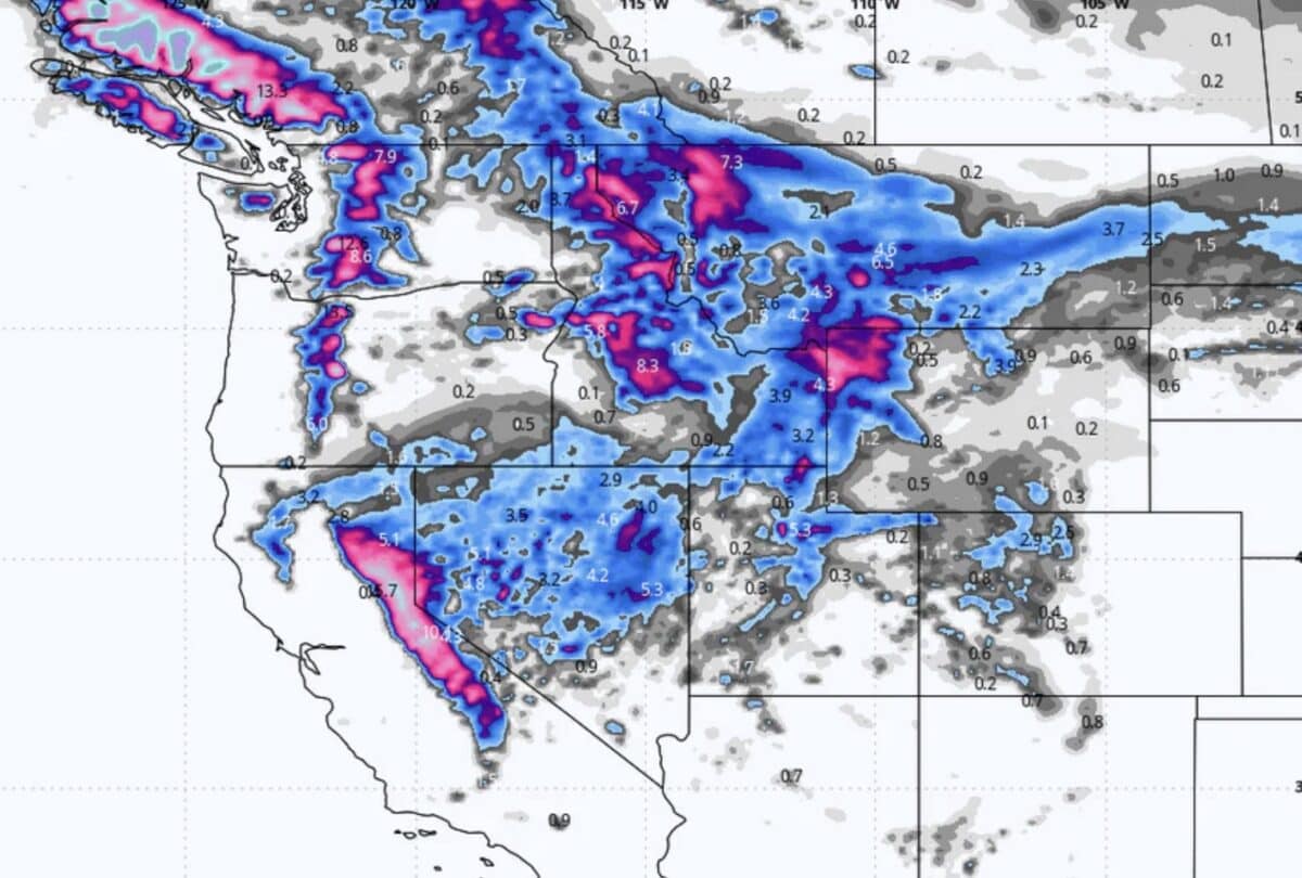 The warm stretch holds through Friday, then the pattern flips this weekend with more moisture and stronger winds pushing in from the Pacific. The Pacific Northwest gets the first meaningful snowfall, with the best totals focused on the northern higher Cascade resorts. ย Expect dense, heavier snow at the start, then a gradual improvement in quality as colder air lowers snow levels late Sunday into Monday. Amounts will be light aside from perhaps 5-9 at the upper elevations of Whistler.