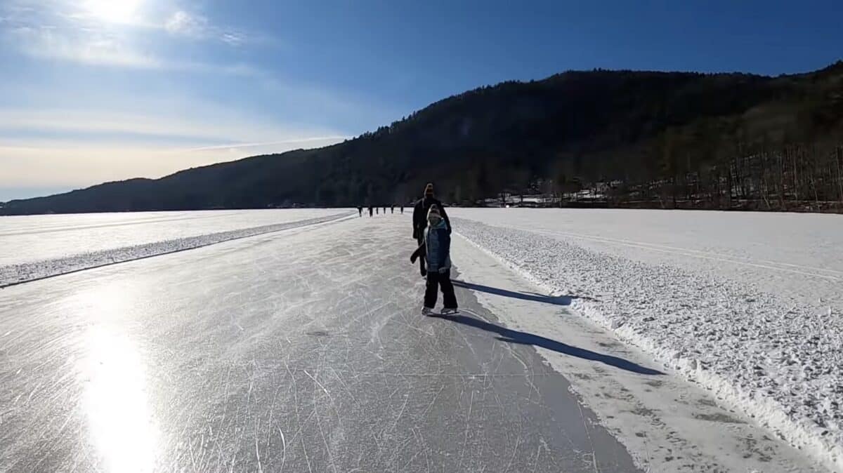 If you’re looking to experience nordic skating for yourself in the United States, Lake Morey in Vermont is a great place to do so. Located in the town of Fairlee, Lake Morey Resort provides both a standard ice skating rink and the country’s longest ice trail, currently stretching 4 miles long across the entire lake.