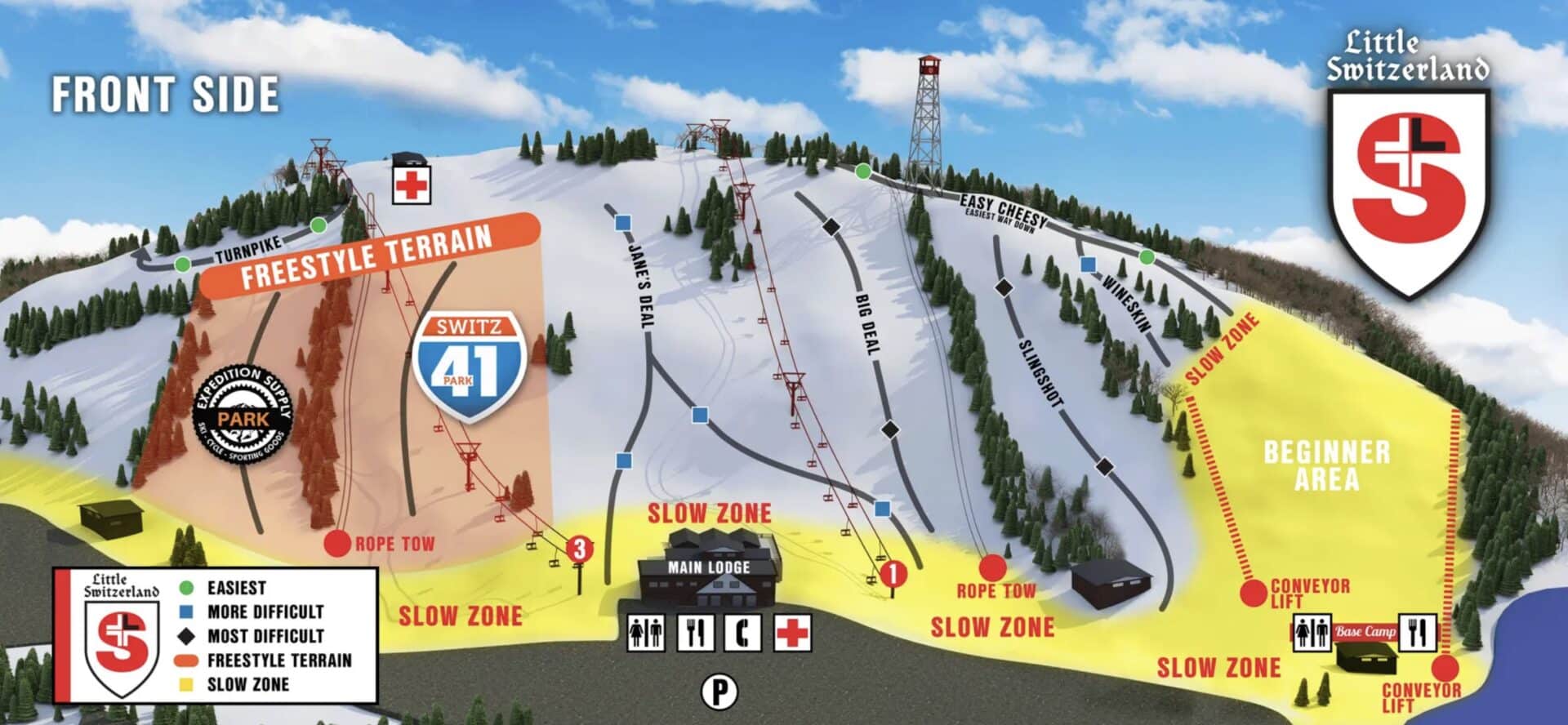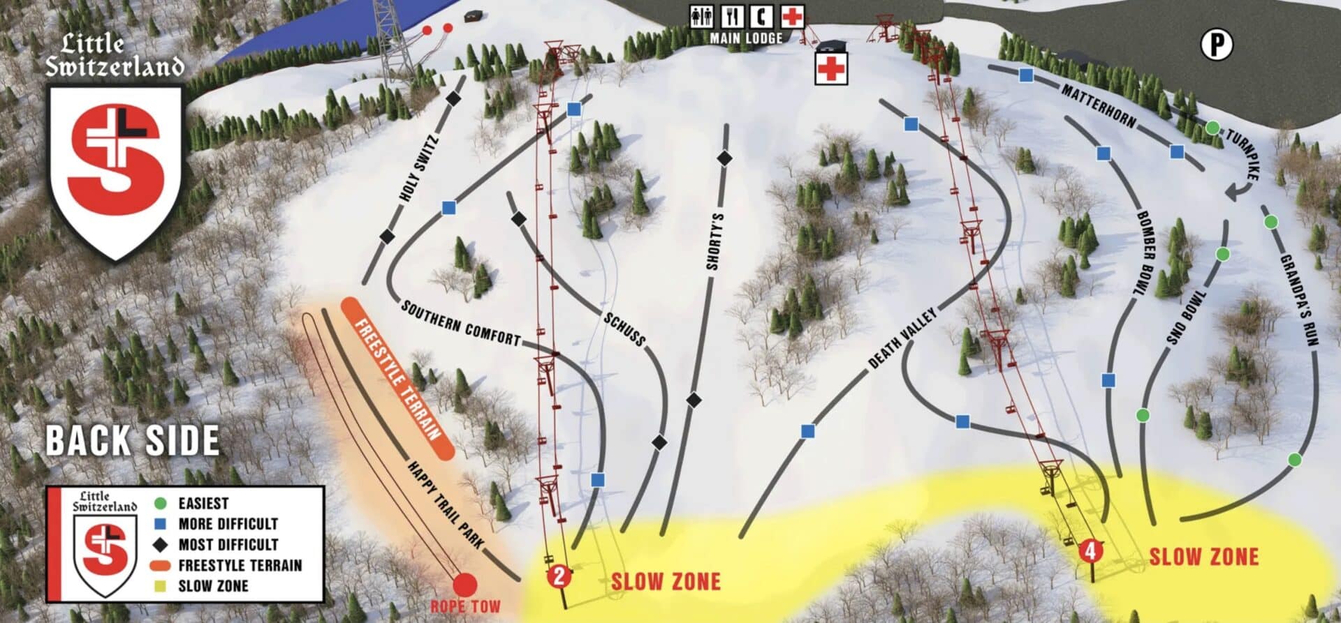 Last week, Little Switzerland officially announced the replacement of two of its chairlifts. Lift 1-2 is an interesting over-and-out chairlift. There are base terminals on both the front and back sides that take people up from the two terrain pods. At the top, there are unloading terminals for both sides. Both chairlifts are fixed-grip doubles.
