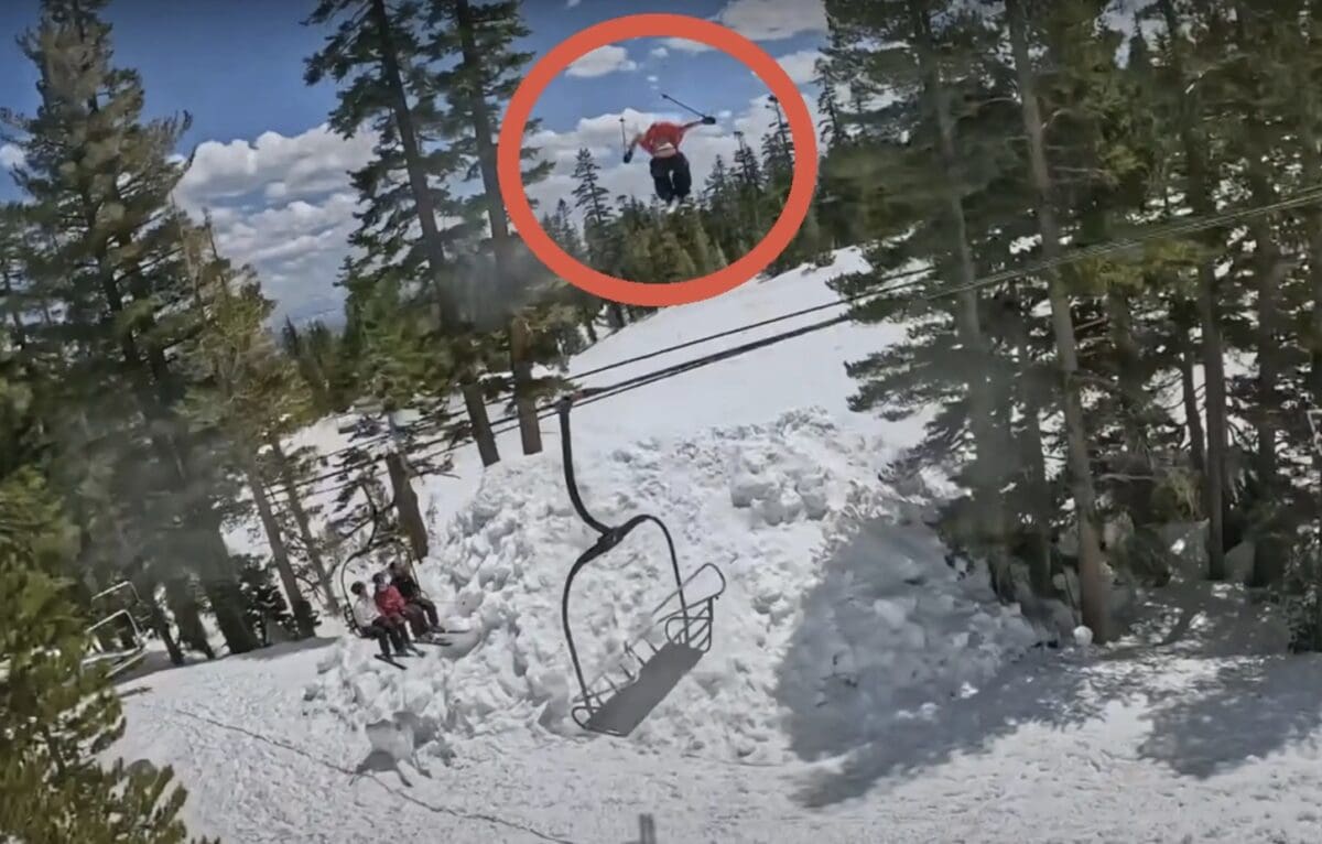 Before you start getting any big ideas about jumping chairlifts at your local ski resort, know that this video was carefully orchestrated by Red Bull on a closed course under the close supervision of Mammoth Mountain and should not be attempted by the skiing public.