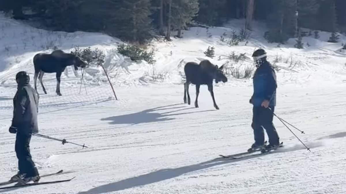 These 2 moose were spotted running across a fairly crowded ski trail at Colorado’s Breckenridge Resort on Sunday, February 22nd. Fortunately nobody was charged by either of the moose, but that doesn’t mean everyone was acting properly.