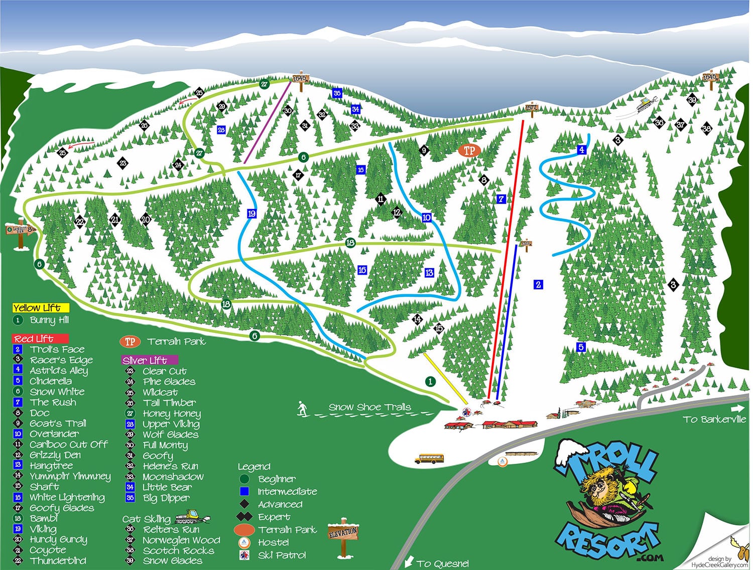 Back in January, Troll Resort opened its first runs as part of the Pinegrove expansion. This new terrain pod is serviced by a t-bar, which is one of the longest on the continent. The Black T-Bar has a 100-meter 49.4% grade near the beginning, but riders barely notice the steepness thanks to the detailed layout and engineering.