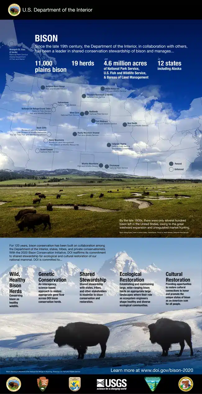 -Stay at least 25 yards (about 75 feet) away at all times—roughly the length of two school buses or the distance where your thumb can fully cover the bison when you close one eye.