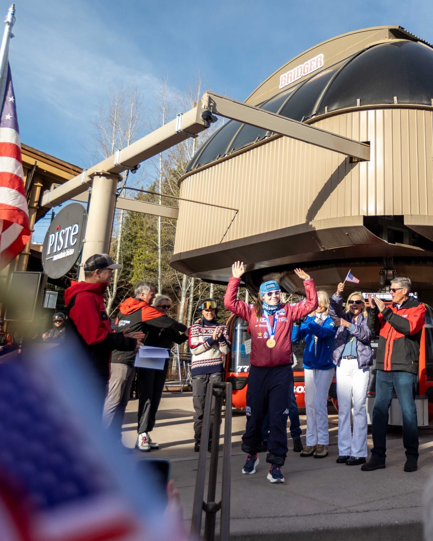 Breezy took home the gold in the downhill at the Cortina Winter Olympics this winter and the good folks JHMR decided the honor the local legend with a gondola celebrating her victory and ribbon cutting event where she met her fans and skied from top of Bridger down to the base. Can’t wait to ride the Breezy Gondi next time in Jackson. Go Breezy!