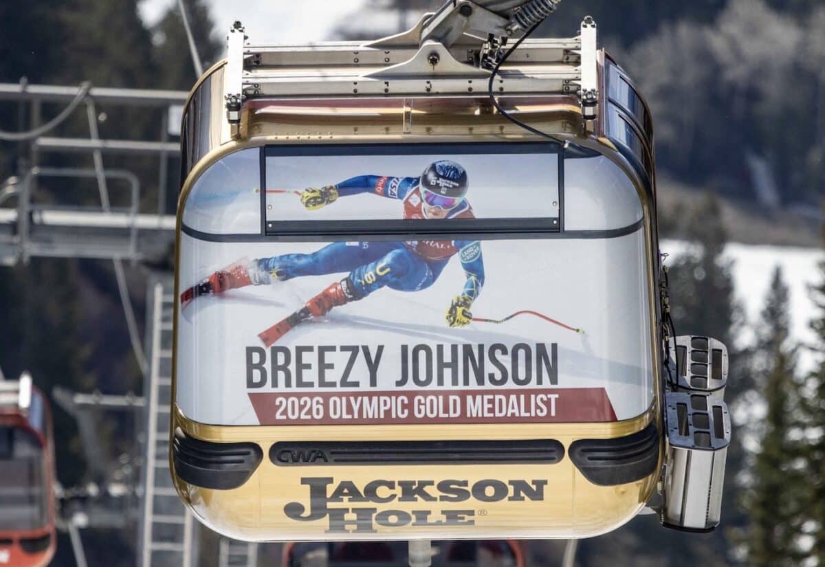 TETON VILLAGE, Wyo. — Cheers to Olympic gold medalist Breezy Johnson who now has her very own gold-wrapped gondola at Jackson Hole Mountain Resort. Breezy was born and raised in Jackson where she started skiing at Jackson Hole, racing for the Jackson Hole Ski and Snowboard Club until age 13.