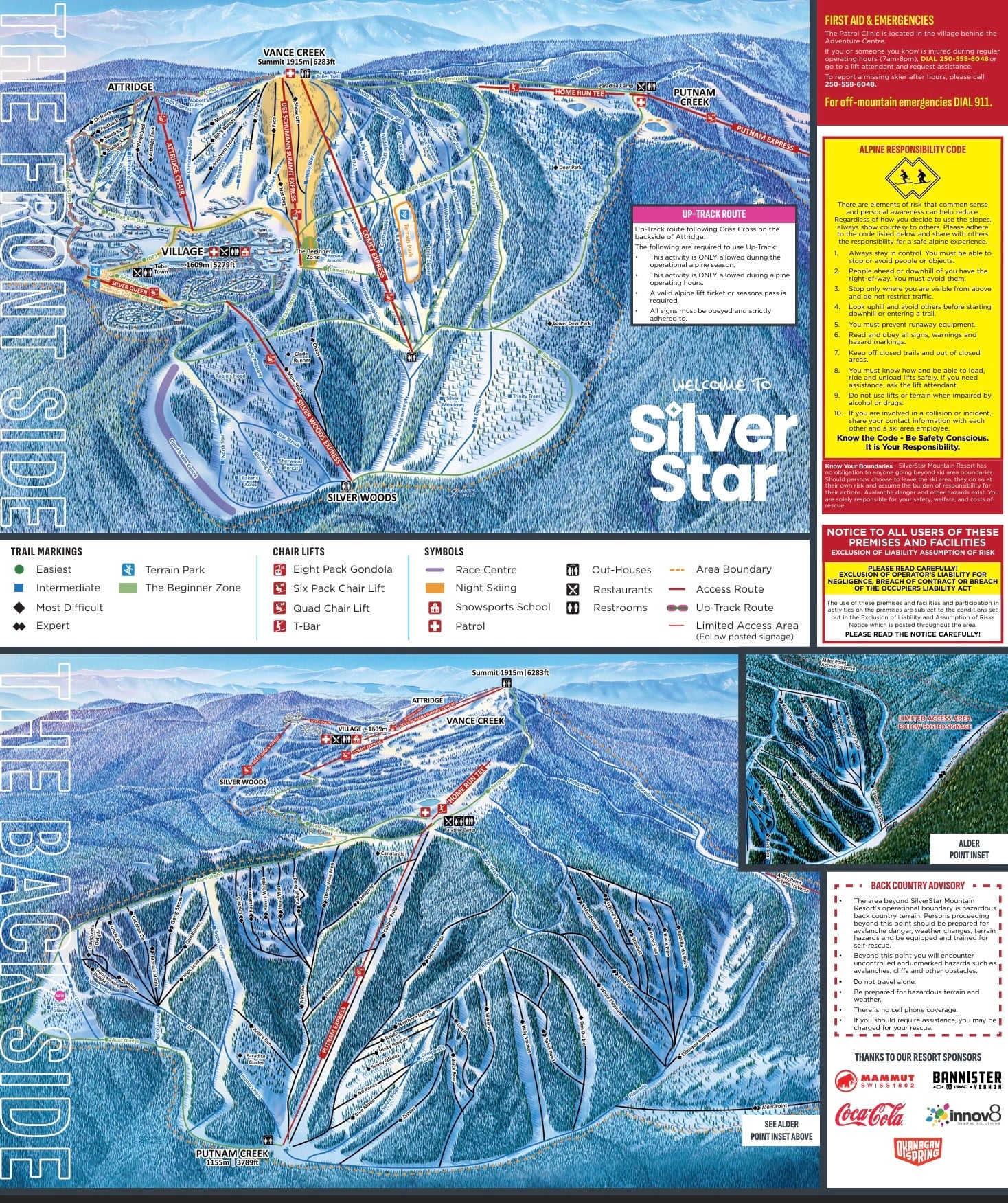 The ski resort has 133 trails across 3,304 acres of skiable terrain, a 2,493-foot (760-meter) vertical drop, over 276 inches (700 cm) of annual snowfall, and a beautiful base village with various slopeside lodging options. During the offseason, SilverStar transforms into one of the best downhill mountain biking parks on the continent.