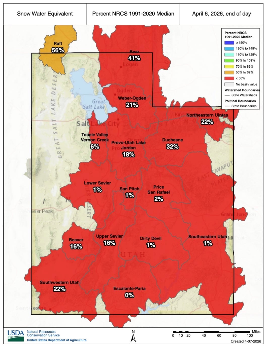 “Clayton says the lack of April 1 snowpack will strongly influence water supply forecast for Utah. We will include updated forecast volumes in our forthcoming water supply outlook report. While this year’s snowpack conditions have created challenges for runoff modeling, NRCS’s new forecast system and platform is better equipped than previous modeling systems to deal with anomalous snowpack seasons like 2026, including an AI driven approach, combining machine-learning, improved accuracy and new forecast products for our water users, such as forecast evolution plots and Weekly guidance forecast for select location locations.” -Matt Johnson, KSL