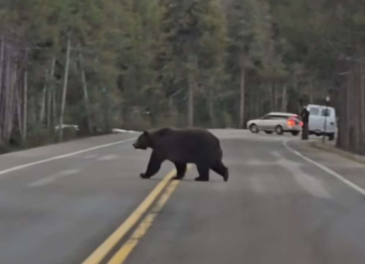 Teton County, Wyoming — Father to many of the young cubs in Grand Teton National Park, Grizzly Bear 679, affectionately known as Bruno made his first appearance of the spring season as he sauntered across a roadway much to the joy of Western Wyoming based photographer and videographer T. Lyn Neufeld. Widely regarded as the alpha male grizzly in the region of the park, Bruno is elusive but easily recognizable to the trained eye from his incredible size and battle scars on his face.