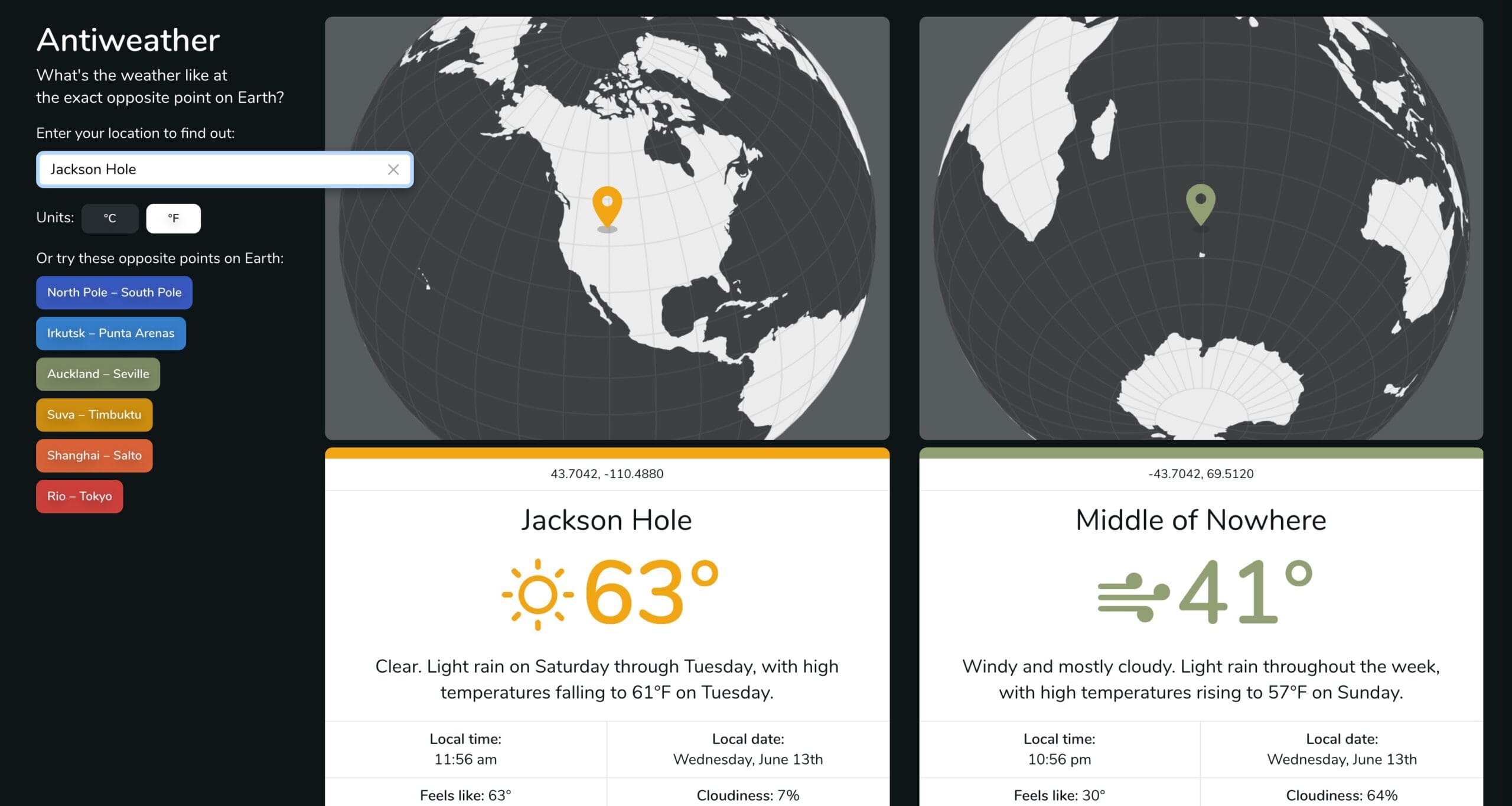 Posted inMap, News, Weather Antiweather Shows You The Weather On The Opposite Point On Earth From Where You Are by Unofficial NetworksJune 13, 2018June 13, 2018