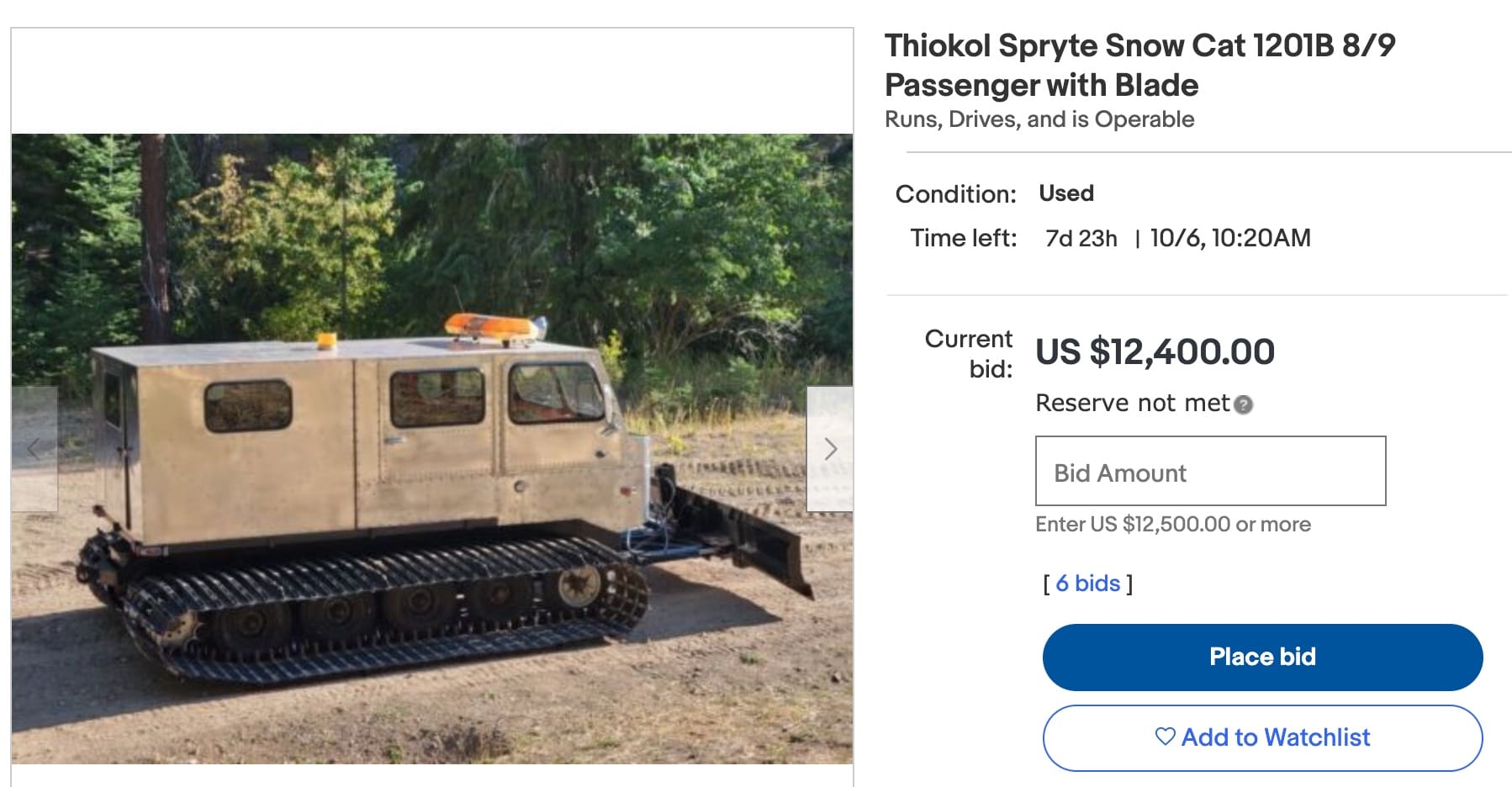 Posted inBackcountry, Skiing, Snowboarding 9-Passenger SnowCat For Sale on EBAY (Current Bid $12,400) by Francis XavierSeptember 28, 2022September 28, 2022